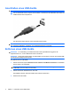 Anschließen eines USB-Geräts ACHTUNG: Schließen Sie USB-Geräte vorsichtig an, um die Anschlüsse nicht zu beschädigen. ▲ Um ein USB-Gerät an den Computer anzuschließen, schließen Sie das USB-Kabel des Geräts am USB-Anschluss des Computers an. Ein akustisches Signal zeigt an, dass das Gerät erkannt wurde. HINWEIS: Wenn Sie ein USB-Gerät das erste Mal anschließen, wird im Infobereich rechts außen in der Taskleiste die Meldung „Installieren von Gerätetreibersoftware“ angezeigt.