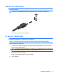 Ansluta en 1394-enhet VIKTIGT: Använd så lite kraft som möjligt när du ansluter 1394-enheter, så minskar du risken för att kontakterna skadas. ▲ Anslut en 1394-enhet till datorn genom att ansluta enhetens 1394-kabel till 1394-porten. Du hör ett ljud när enheten har upptäckts. Ta bort en 1394-enhet VIKTIGT: Undvik att förlora information eller att datorn slutar svara genom att följa nedanstående instruktioner för att ta bort en 1394-enhet på ett säkert sätt.