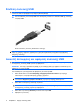 Σύνδεση συσκευής USB ΠΡΟΣΟΧΗ Για να αποφύγετε την πρόκληση βλάβης στην υποδοχή USB κατά τη σύνδεση συσκευών USB, να εφαρμόζετε την ελάχιστη δυνατή δύναμη. ▲ Για να συνδέσετε μια συσκευή USB στον υπολογιστή, συνδέστε το καλώδιο USB της συσκευής στη θύρα USB. Όταν εντοπιστεί η συσκευή, θα ακούσετε έναν ήχο. ΣΗΜΕΙΩΣΗ Την πρώτη φορά που συνδέετε μια συσκευή USB, στην περιοχή ειδοποιήσεων, στη δεξιά άκρη της γραμμής εργασιών, εμφανίζεται το μήνυμα "Εγκατάσταση λογισμικού προγράμματος οδήγησης συσκευής".
