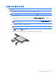 ExpressCard 중지 및 제거 주의: ExpressCard 를 제거하기 전에 정보가 손실되거나 시스템이 다운되지 않도록 반드시 카드를 중지하십시오. 1. 정보를 저장한 다음 ExpressCard 와 관련된 모든 프로그램을 닫습니다. 주: 데이터 전송을 중지하려면 운영체제의 복사 중 창에서 취소를 누릅니다. 2. ExpressCard 중지 a. 작업 표시줄의 오른쪽 끝에 있는 알림 영역에서 하드웨어 안전하게 제거 아이콘을 두 번 누 릅니다. 주: 하드웨어 안전하게 제거 아이콘을 표시하려면 알림 영역에서 숨겨진 아이콘 표시 아이 콘(< 또는 <<)을 누릅니다. b. 목록에서 ExpressCard 의 이름을 누릅니다. 주: ExpressCard 가 목록에 표시되지 않으면 제거하기 전에 카드를 중지하지 않아도 됩니 다. c. 3. 중지를 누른 다음 확인을 누릅니다. ExpressCard 해제 및 제거 a. ExpressCard (1)를 살짝 눌러 잠금을 해제합니다. b.