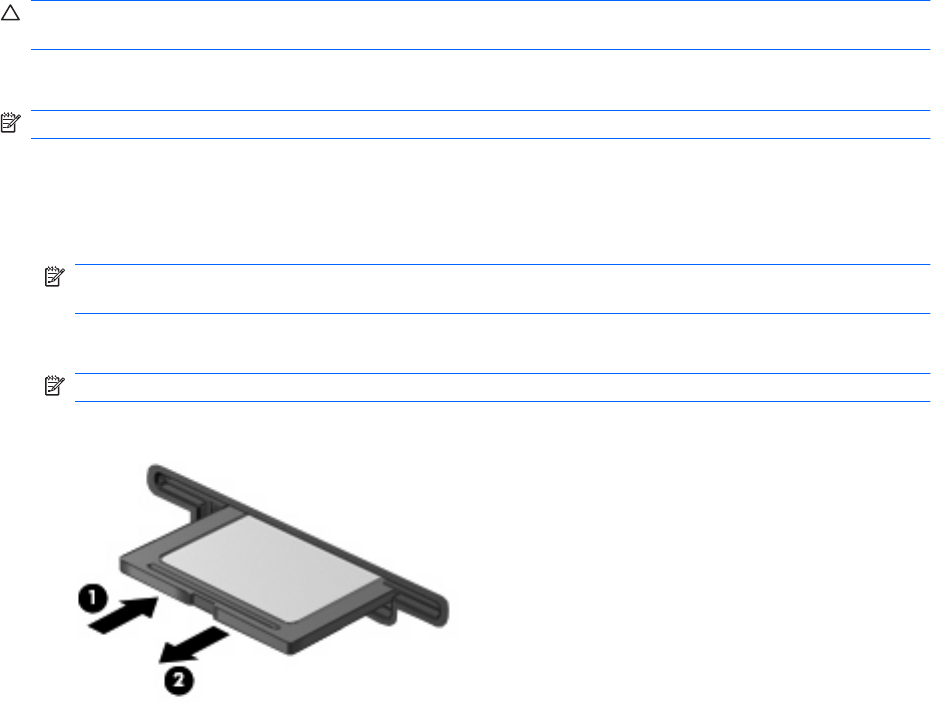 3. To eject the digital card, press in on the card (1), and then remove it from the slot (2).