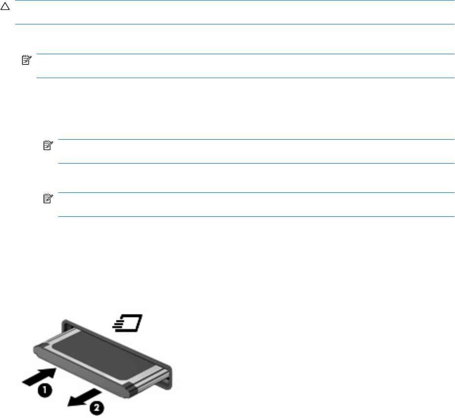 a. Tryck ExpressCard-kortet försiktigt inåt (1) så att det frigörs.