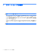 メディア カードの停止と取り出し 注意: データの損失やシステムの応答停止を防ぐため、メディア カードを取り出す前にカードを停 止してください。 1. 情報を保存し、メディア カードに関連するすべてのプログラムを閉じます。 注記: データ転送を停止するには、オペレーティング システムの[コピーしています]ウィンド ウで[キャンセル]をクリックします。 2. メディア カードを停止します。 a. タスクバーの右端にある通知領域の[ハードウェアの安全な取り外し]アイコンをダブルクリ ックします。 注記: [ハードウェアの安全な取り外し]アイコンを表示するには、通知領域の[隠れている インジケータを表示します]アイコン([<]または[<<])をクリックします。 b. 一覧からメディア カード名をクリックします。 注記: 一覧に表示されないメディア カードを取り出す場合、カードを停止する必要はあ りません。 c. 3.