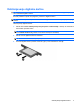 Vstavljanje digitalne kartice POZOR: Da preprečite poškodovanje digitalne kartice ali računalnika, ne vstavljajte v čitalnik pomnilniških kartic SD nikakršnih prilagojevalnikov. POZOR: Da ne pride do poškodbe priključkov digitalne kartice, pri vstavljanju slednje ne uporabljajte sile. 1. Digitalno kartico držite tako, da bo nalepka obrnjena navzgor, priključek pa proti računalniku. 2. Vstavite kartico v čitalnik kartic SD, nato pa jo potisnite tako, da se trdno zaskoči.