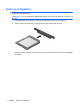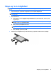 3 Bruke ExpressCard-kort ExpressCard er et PC-kort med høy ytelse som settes inn i ExpressCard-sporet. I likhet med standard PC-kort er ExpressCard-kort laget i samsvar med spesifikasjonene fra PCMCIA (Personal Computer Memory Card International Association). Konfigurere et ExpressCard-kort Installer kun programvaren som kreves for enheten. Hvis du blir bedt om å installere enhetsdrivere fra ExpressCard-produsenten: ● Installer kun enhetsdrivere for operativsystemet som du bruker.