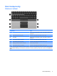 Komponenta Popis (1) Klávesa esc Při stisknutí v kombinaci s klávesou fn zobrazí informace o systému. (2) Klávesa fn Stisknutím v kombinaci s funkční klávesou nebo klávesou esc lze vykonat často používané systémové funkce. (3) Logo Windows, klávesa Zobrazí nabídku Start systému Windows. (4) Windows, klávesa aplikací Zobrazí místní nabídku položky, na které je umístěn ukazatel. (5) Integrovaná číselná klávesnice Lze ji používat stejně jako klávesy externí číselné klávesnice.