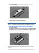 12. Luk dækslet (2). 13. Stram skruen på dækslet til hukommelsesmodulrummet (3). 14. Sæt batteriet i igen. 15. Vend computeren med højre side opad, og tilslut derefter computeren til ekstern strøm og eksterne enheder. 16. Tænd computeren.