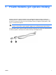 Připojení kabelu modemu VAROVÁNÍ! Pro snížení rizika úrazu elektrickým proudem a poškození zařízení nezapojujte kabel modemu nebo telefonní kabel do zásuvky RJ-45 (síť). Připojení kabelu modemu: 2 1. Zapojte kabel modemu do zásuvky modemu (1) počítače. 2. Zapojte kabel modemu do telefonní zásuvky RJ-11 (2).