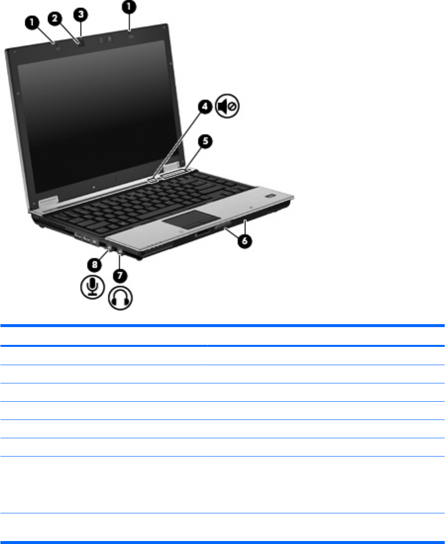 (3) HP Webcam light Turns on when video software accesses the webcam.
