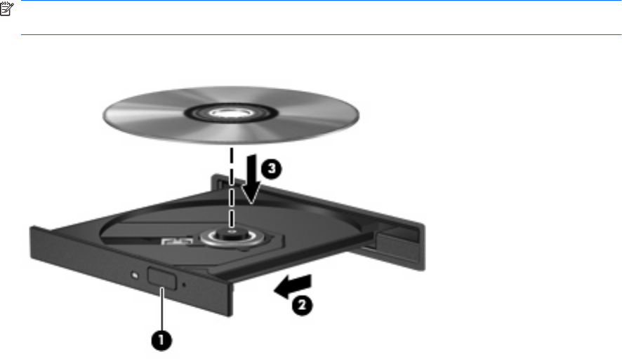 2. Stlačením uvoľňovacieho tlačidla (1) na kryte jednotky uvoľnite podávač disku.