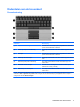 Onderdeel Beschrijving (1) esc-toets Druk op deze toets in combinatie met de fn-toets om systeeminformatie weer te geven. (2) fn-toets Druk op deze toets in combinatie met een functietoets of de esctoets om veelgebruikte systeemfuncties uit te voeren. (3) Windows-logotoets Hiermee geeft u het menu Start van Windows weer. (4) Windows-applicatietoets Hiermee opent u een snelmenu voor items waarbij de aanwijzer staat.