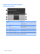 Componenti della parte anteriore del computer Componente Descrizione (1) Accesa: una periferica wireless integrata, come una periferica WLAN (Wireless Local Area Network), un modulo HP Broadband Wireless e/o una periferica Bluetooth, è attiva. Spia wireless Ambra: tutte le periferiche wireless sono disattivate. (2) (3) (4) Spia di alimentazione Spia della batteria Spia dell'unità ● Accesa: il computer è acceso. ● Lampeggiante: il computer è in standby.