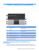 1 Utilizzo di dispositivi di puntamento Componente Descrizione (1) Stick di puntamento Consente di spostare il puntatore e di selezionare e attivare gli elementi sullo schermo. (2) Pulsante sinistro Ha la stessa funzione del pulsante sinistro di un mouse esterno. (3) TouchPad* Consente di spostare il puntatore e di selezionare e attivare gli elementi sullo schermo. (4) Pulsante sinistro del TouchPad* Ha la stessa funzione del pulsante sinistro di un mouse esterno.
