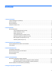 Stikkordregister B batteriladeinformasjon 5 bildeoverføringstyper 4 D direktetaster batteriladeinformasjon 5 beskrivelse 3 bruke 4 lyssensor 5 redusere lysstyrken på skjermen 5 skifte visning 4 starte hvilemodus 4 vise systeminformasjon 4 øke lysstyrken på skjermen 5 direktetaster på tastatur, plassering 3 F fn-tast 3 funksjonstaster 3 H HDMI 5 HP QuickLook 2 10 hvilemodus, direktetast I infoknapp 6 K knapper info 6 presentasjon 7 Quick Launch 6 styrepinne 1 styrepute 1 komposittvideo 5 18 Stikkordregi