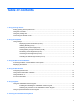 Table of contents 1 Using pointing devices Setting pointing device preferences ..................................................................................................... 1 Using the TouchPad ............................................................................................................................. 2 Using the pointing stick ........................................................................................................................ 2 Connecting an external mouse ....