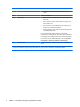 1 Placering af knapper og lysdioder for strøm I følgende illustration og skema identificeres og beskrives placeringen af knapper og lysdioder for strøm. (1) (2) Komponent Beskrivelse Lysdioder for tænd/sluk (2)* ● Tændt: Computeren er tændt. ● Blinker: Computeren er i slumretilstand. ● Slukket: Der er slukket for computeren, eller den er i dvale. ● Gul: Et batteri lades op. ● Turkis: Et batteri er tæt på at være fuldt opladet.