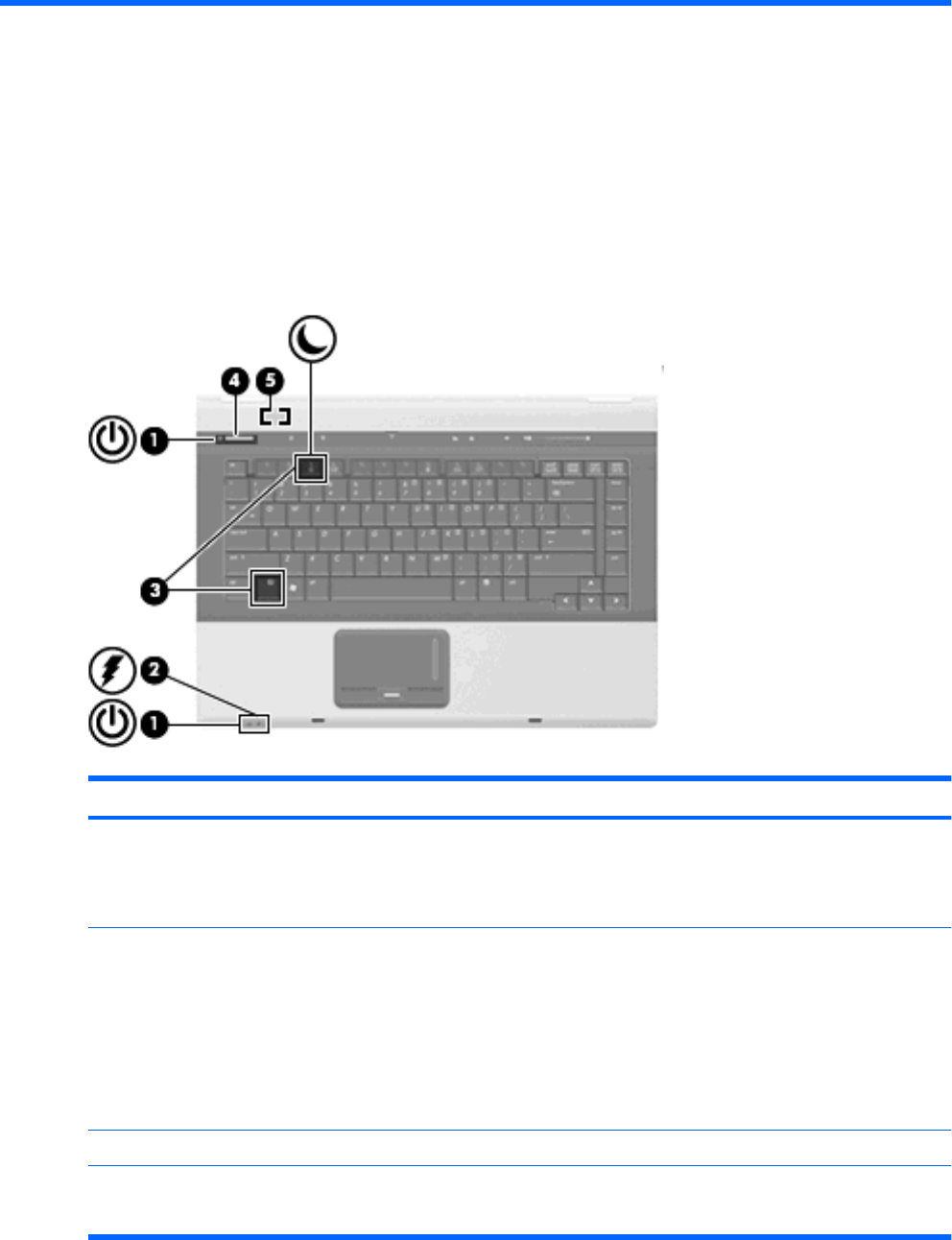 以下插图和表格标出并说明电源控件和指示灯位置。