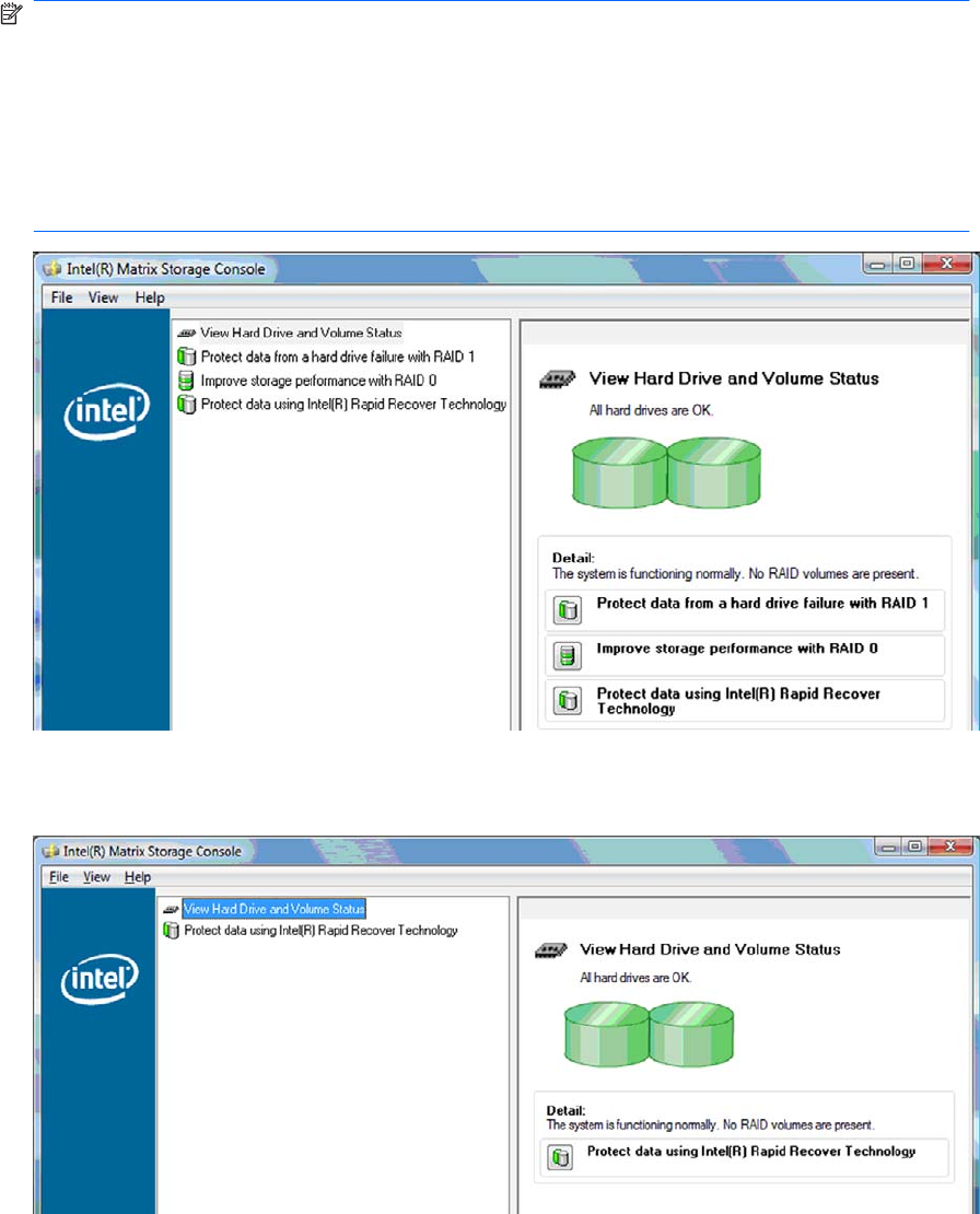 1. Odaberite Start > Svi programi > Intel Matrix Storage Manager (Upravitelj spremišta Intel Matrix)