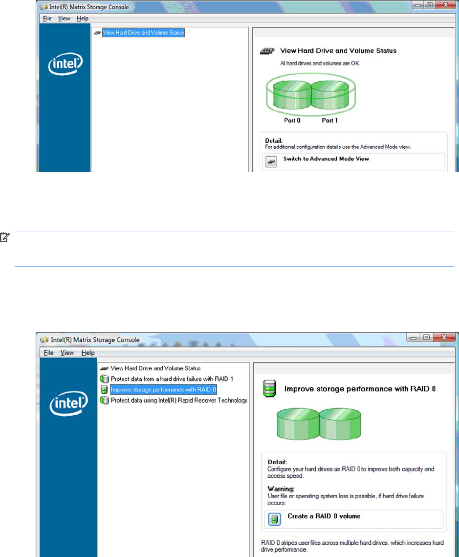 pohrane uz RAID 0), a zatim kliknite ikonu uz Create a RAID 0 volume (Stvaranje RAID 0