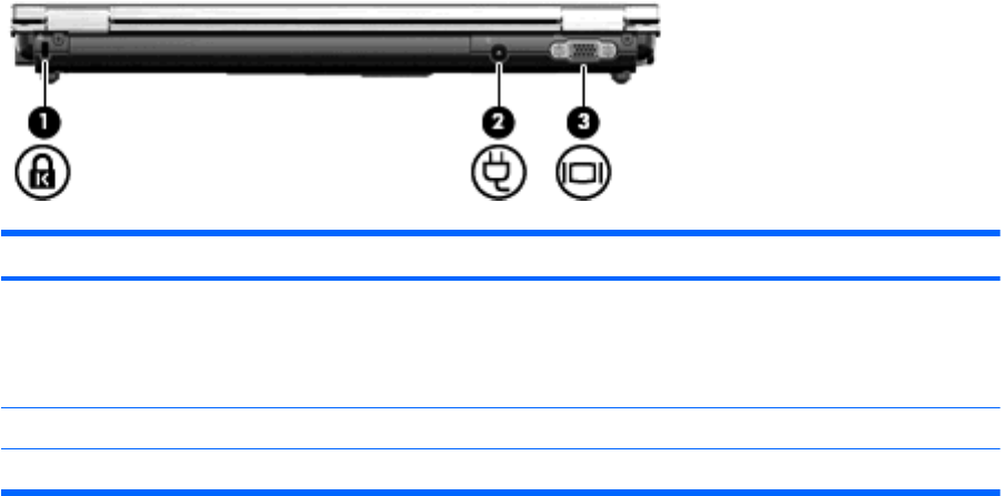 (1) Slot para cabo de segurança Conecta um cabo de segurança opcional ao computador.