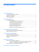 Sisällysluettelo 1 Osoitinlaitteiden käyttäminen Osoitinlaitteiden asetusten määrittäminen ........................................................................................... 1 Kosketusalustan käyttäminen ............................................................................................................... 2 Paikannustapin käyttäminen ................................................................................................................ 2 Ulkoisen hiiren liittäminen ..............