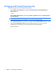 Avanserte oppgaver Angi sikkerhetsalternativer Bruk siden Security (Sikkerhet) i BIOS Configuration (BIOS-konfigurering) til å forbedre sikkerheten for datamaskinen. MERK: Alle alternativene er ikke tilgjengelig på alle datamaskiner, og andre alternativer kan også finnes. Slik angir du sikkerhetsalternativer: 1. Åpne BIOS Configuration (BIOS-konfigurering), og klikk på Security (Sikkerhet). 2. Velg hvilke som helst av alternativene i tabellen nedenfor. 3. Endre innstillingene etter behov. 4.