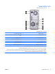 רכיבי הלוח האחורי איור 1-4רכיבי הלוח האחורי טבלה 1-3רכיבי הלוח האחורי 1 מחבר כבל המתח 8 מחבר לעכבר ) PS/2ירוק( 2 מתג בורר מתח 9 מחבר ליציאה עבור התקני שמע המתחברים לחשמל )ירוק( 3 מחבר כניסת שמע )כחול( 10 מחבר למיקרופון )ורוד( 4 מחבר רשת RJ-45 11 יציאות ) USBאפיק טורי אוניברסלי( 5 יציאת 1394 12 מחבר לצג ) DVIלבן( 6 מחבר לצג ) VGAכחול( 13 כניסת שמע דיגיטלי )שחור( 7 יציאת שמע דיגיטלי