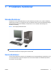1 Produktens funktioner Standardfunktioner Funktionerna i HP Compaq Microtower kan variera beroende på modell. Om du vill få en fullständig förteckning över maskin- och programvara som är installerad i datorn kan du köra diagnostikverktyget (inkluderat bara på vissa datormodeller). Instruktioner för hur du använder detta verktyg finns i handboken Felsökning. Bild 1-1 HP Compaq dx7500 Microtower OBS! Enhetskonfigurationen som visas ovan kan skilja sig från din datormodell.
