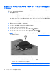 メモリ モジュールの追加または交換 お使いのコンピュータには 2 か所にメモリ モジュール コンパートメントが装備されています。メイ ン メモリ モジュール コンパートメントはキーボードの下にあります。コンピュータの裏面に拡張メ モリ モジュール コンパートメントがあります。 コンピュータのメモリ容量をアップグレードするには、メモリ モジュールを空の拡張メモリ モジュ ール スロットに追加するか、メイン メモリ モジュール スロットに装着されているメモリ モジュール を交換します。 警告! 感電や装置の損傷を防ぐため、電源コードとすべてのバッテリを取り外してからメモリ モジ ュールを取り付けてください。 注意: 静電気(ESD)によって電子部品が損傷することがあります。作業を始める前に、アースさ れた金属面に触るなどして、身体にたまった静電気を放電してください。 1