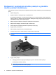 Dodawanie i wymiana modułów pamięci Komputer jest wyposażony w dwie komory modułów pamięci. Podstawowa komora modułu pamięci jest umieszczona pod klawiaturą. Komora dodatkowego modułu pamięci znajduje się na spodzie komputera. Pojemność pamięci komputera można zwiększyć, dodając moduł pamięci do wolnego gniazda dodatkowego lub wymieniając istniejący moduł pamięci na moduł o wyższej pojemności.