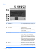 Component Description (6) Num lock light On: Num lock is on or the embedded numeric keypad is enabled. (7) Volume mute light ● On: Computer sound is on. ● Amber: Computer sound is off. (8) Volume down light Blinking: The volume scroll zone is being used to decrease speaker volume. (9) Volume up light Blinking: The volume scroll zone is being used to increase speaker volume. *The 2 wireless lights display the same information.