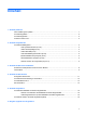 Innehåll 1 Använda pekdonen Göra inställningar för pekdon ............................................................................................................... 1 Använda styrplattan .............................................................................................................................. 2 Använda styrspaken ............................................................................................................................. 2 Ansluta en extern mus .....................