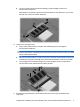 12. Luk dækslet (2). 13. Stram skruen på dækslet til hukommelsesmodulrummet (3). 14. Sæt batterierne i igen. 15. Slut til ekstern strøm, og tilslut eksterne enheder. 16. Tænd computeren. Opgradering af et hukommelsesmodul i den primære hukommelsesmodulslot Sådan opgraderer du et hukommelsesmodul i den primære hukommelsesmodulslot: 1. Gem dataene. 2. Luk computeren ned. Hvis du er i tvivl om, hvorvidt computeren er slukket eller i dvaletilstand, kan du tænde for den ved at trykke på tænd/sluk-knappen.
