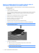 Ajout ou remplacement d’un module mémoire dans le connecteur d’extension de module mémoire Pour ajouter ou remplacer un module mémoire dans le connecteur d’extension de module mémoire, procédez comme suit : 1. Enregistrez votre travail. 2. Arrêtez l’ordinateur et fermez l’écran. Si vous ne savez pas si l’ordinateur est éteint ou en mode Veille prolongée, mettez-le sous tension en appuyant sur l’interrupteur d’alimentation. Mettez-le ensuite hors tension via le système d’exploitation. 3.