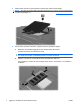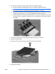 . Sollevare dal computer il coperchio dello scomparto dei moduli di memoria (2). NOTA: Se lo slot del modulo della memoria di espansione non è pieno, ignorare il passaggio 9 e andare al passaggio 10. 9. Per rimuovere il modulo di memoria, seguire le istruzioni riportate di seguito: a. Rilasciare i gancetti di fissaggio (1) sui due lati del modulo di memoria. Il modulo di memoria si inclinerà verso l'alto.