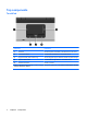 Top components TouchPad Component Description (1) TouchPad* Moves the pointer and selects or activates items on the screen. (2) Left TouchPad button* Functions like the left button on an external mouse. (3) Fingerprint reader (select models only) Allows a fingerprint logon to Windows, instead of a password logon. (4) Right TouchPad button* Functions like the right button on an external mouse. (5) TouchPad scroll zone Scrolls up or down. *This table describes factory settings.