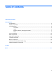 Table of contents 1 Identifying hardware 2 Components Product notice ...................................................................................................................................... 3 Display components ............................................................................................................................. 3 Top components ...................................................................................................................................