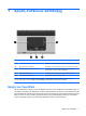ΣΗΜΕΙΩΣΗ Εάν χρησιμοποιείτε το TouchPad για να μετακινήσετε το δείκτη, πρέπει να ανασηκώσετε το δάχτυλό σας από το TouchPad, πριν από τη μετακίνησή του στη ζώνη κύλισης. Εάν απλώς σύρετε το δάχτυλό σας από το TouchPad προς τη ζώνη κύλισης, η λειτουργία κύλισης δεν θα ενεργοποιηθεί. Ορισμός προτιμήσεων συσκευής δείκτη Χρησιμοποιήστε τις “Ιδιότητες ποντικιού” των Windows® για να προσαρμόσετε τις ρυθμίσεις των συσκευών δείκτη, όπως διαμόρφωση κουμπιών, ταχύτητα κλικ και επιλογές δείκτη.