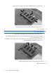 הוספה או החלפה של מודולי זיכרון המחשב כולל שני תאים של מודולי זיכרון .תא מודול הזיכרון הראשי ממוקם מתחת למקלדת .תא מודול הזיכרון להרחבה ממוקם בתחתית המחשב. ניתן לשדרג את קיבולת הזיכרון של המחשב על-ידי הוספת מודול זיכרון לחריץ ההרחבה הריק של מודול הזיכרון ,או על-ידי שדרוג מודול הזיכרון הקיים שנמצא בחריץ מודול הזיכרון הראשי. אזהרה! כדי לצמצם את הסכנה להתחשמלות ולגרימת נזק לציוד ,נתק את כבל המתח והסר את כל הסוללות לפני התקנת מודול זיכרון.