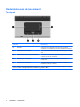 Onderdelen aan de bovenkant Touchpad Onderdeel Beschrijving (1) Touchpad* Hiermee kunt u de aanwijzer (ook wel "cursor" genoemd) verplaatsen en onderdelen op het scherm selecteren of activeren. (2) Linkerknop van het touchpad* Deze knop heeft dezelfde functie als de linkerknop op een externe muis. (3) Vingerafdruklezer (alleen bepaalde modellen) Hiermee kunt u zich met een vingerafdruk bij Windows aanmelden, in plaats van met een wachtwoord.