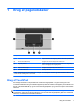 Adgang til kontrolpanelet for hurtigknapper Med Q-menuen i kontrolpanelet for hurtigknapperne kan du angive dine egne indstillinger for infoknappen og præsentationsknappen. Begge knapper kan bruges til at starte programmer, der ofte anvendes. Du kan åbne kontrolpanelet for hurtigknapperne på en af følgende måder: ● Vælg Start > Kontrolpanel > Printere og anden hardware > Hurtigknapper. - eller - ● Dobbeltklik på ikonet HP Hurtigknapper i meddelelsesområdet yderst til højre på proceslinjen.