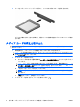 2. カードを ExpressCard スロットに挿入し、しっかり装着されるまで押し込みます。 デバイスが検出されたときに音が鳴り、場合によっては使用可能なオプションのメニューが表示 されます。 注記: ExpressCard を初めて挿入した場合は、タスクバーの右端の通知領域に[デバイス ドラ イバ ソフトウェアをインストールしています]というメッセージが表示されます。 注記: 装着されている ExpressCard は、使用されていなくても電力を消費します。節電するには、 使用していない ExpressCard を停止するか、取り出してください。 ExpressCard の停止と取り出し 注意: データの損失やシステムの応答停止を防ぐため、ExpressCard を取り出す前に ExpressCard を停止してください。 1. 情報を保存し、ExpressCard に関連するすべてのプログラムを閉じます。 注記: データ転送を停止するには、オペレーティング システムの[コピーしています]ウィンド ウで[キャンセル]をクリックします。 2.