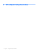 Tartalomjegyzék 1 Computer Setup 2 A Computer Setup használata Navigálás és kiválasztás a Computer Setup programban .................................................................... 3 A gyári beállítások visszaállítása a Computer Setup programban ....................................................... 4 3 A Computer Setup segédprogram menüi File (Fájl) menü ....................................................................................................................................