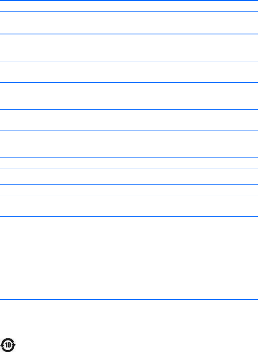 Alle onderdelen die in deze tabel met een X zijn gemarkeerd, zijn in overeenstemming met de Europese RoHS-wetgeving