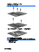 - 新增或更換記憶體模組 此電腦的鍵盤下方有一個記憶體模組置放處。將記憶體模組加入空的擴充記憶體模組插槽,或升級主要 記憶體模組插槽中的現有記憶體模組,就可提高電腦的記憶體容量。 警告! 若要避免觸電或損壞設備的風險,請先拔下電源線並取出所有電池,然後再安裝記憶體模組。 注意: 釋放靜電 (ESD) 會使電子組件受損。開始執行任何程序之前,您必須先觸碰接地的金屬物體, 以確保釋放身上的靜電。 附註: 若要在加入第二個記憶體模組時使用雙聲道組態,請確定兩個記憶體模組的尺寸相同。 若要新增或更換記憶體模組: 1. 儲存您的工作。 2. 關閉電腦並闔上顯示器。 如果您不確定電腦是否已關機或處在休眠模式,短暫按下電源按鈕即可開啟電腦。再透過作業系統 來關閉電腦。 3. 斷開與電腦連接的所有外接式裝置。 4. 拔下電源綫。 5. 請將電腦翻面,以底部朝上放置於平面,讓電池插槽朝向您。 6.