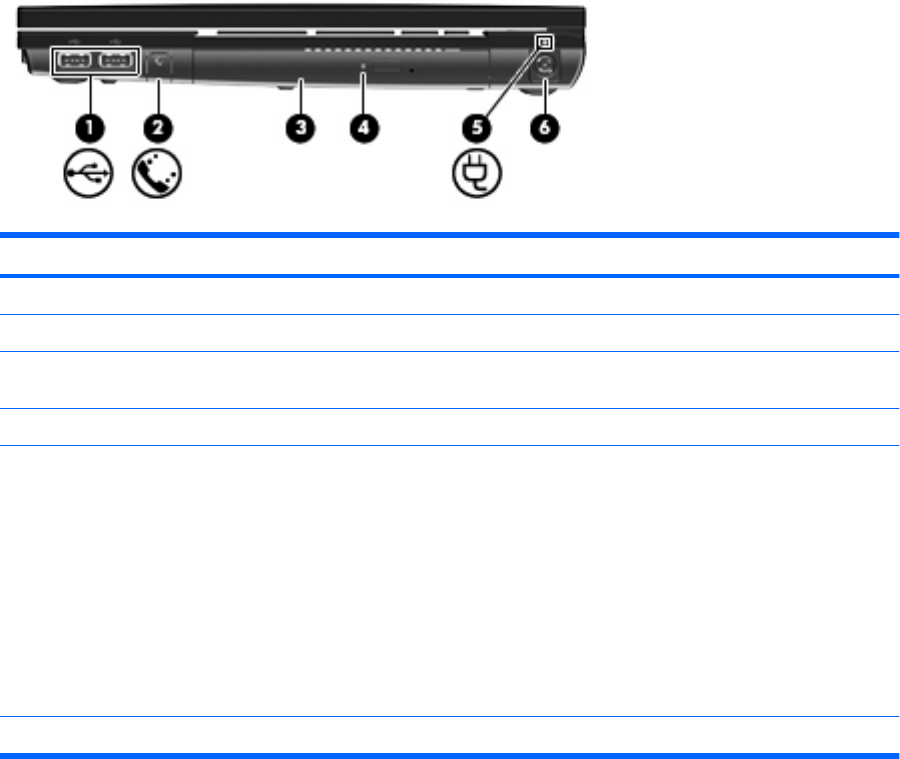 (2) RJ-11-modemkontakt (kun på enkelte modeller) Brukes til tilkobling av modemkabel.
