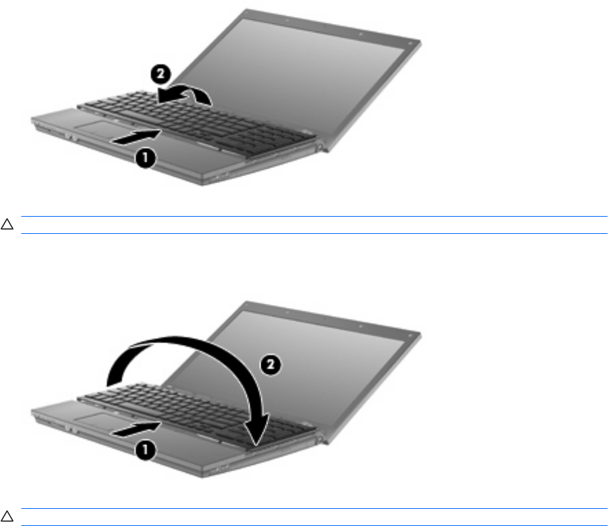 12. V prípade 15- a 17-palcových počítačov posuňte klávesnicu dozadu smerom k obrazovke (1) a