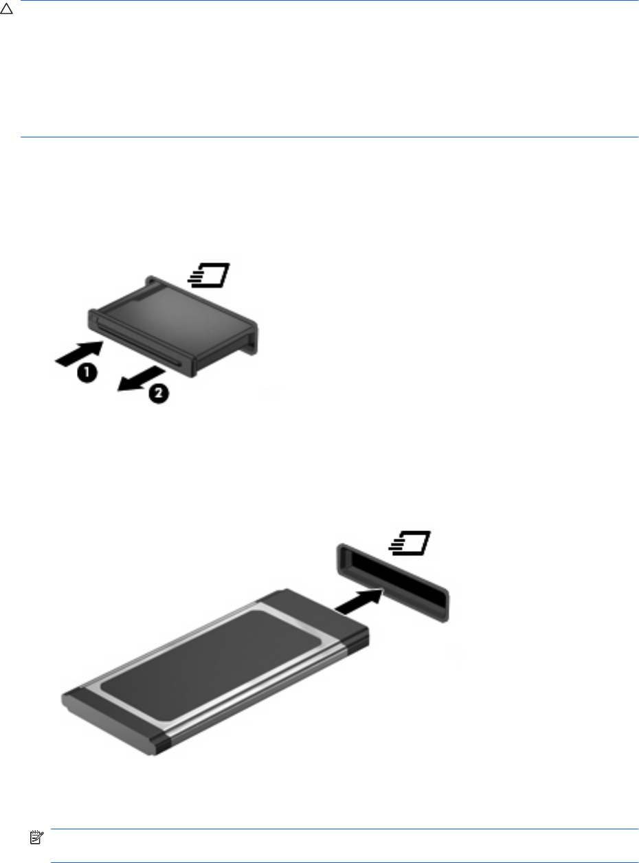 2. Вставьте карту в гнездо карт ExpressCard и нажмите на нее, чтобы она надежно встала на