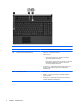 Клавиши ПРИМЕЧАНИЕ: См. рисунок, наиболее точно соответствующий компьютеру. Компонент Описание (1) Клавиша esc При нажатии одновременно с клавишей fn отображаются сведения о системе. (2) Клавиша fn При нажатии одновременно с функциональной клавишей или клавишей esc запускаются часто используемые системные функции. (3) Функциональные клавиши При нажатии одновременно с клавишей fn выполняют наиболее часто используемые системные функции.