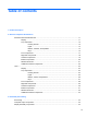 - Table of contents 1 Product description 2 External component identification Windows Vista and Windows XP ....................................................................................................... 11 Display ............................................................................................................................... 11 Top components ................................................................................................................ 12 Pointing devices ............